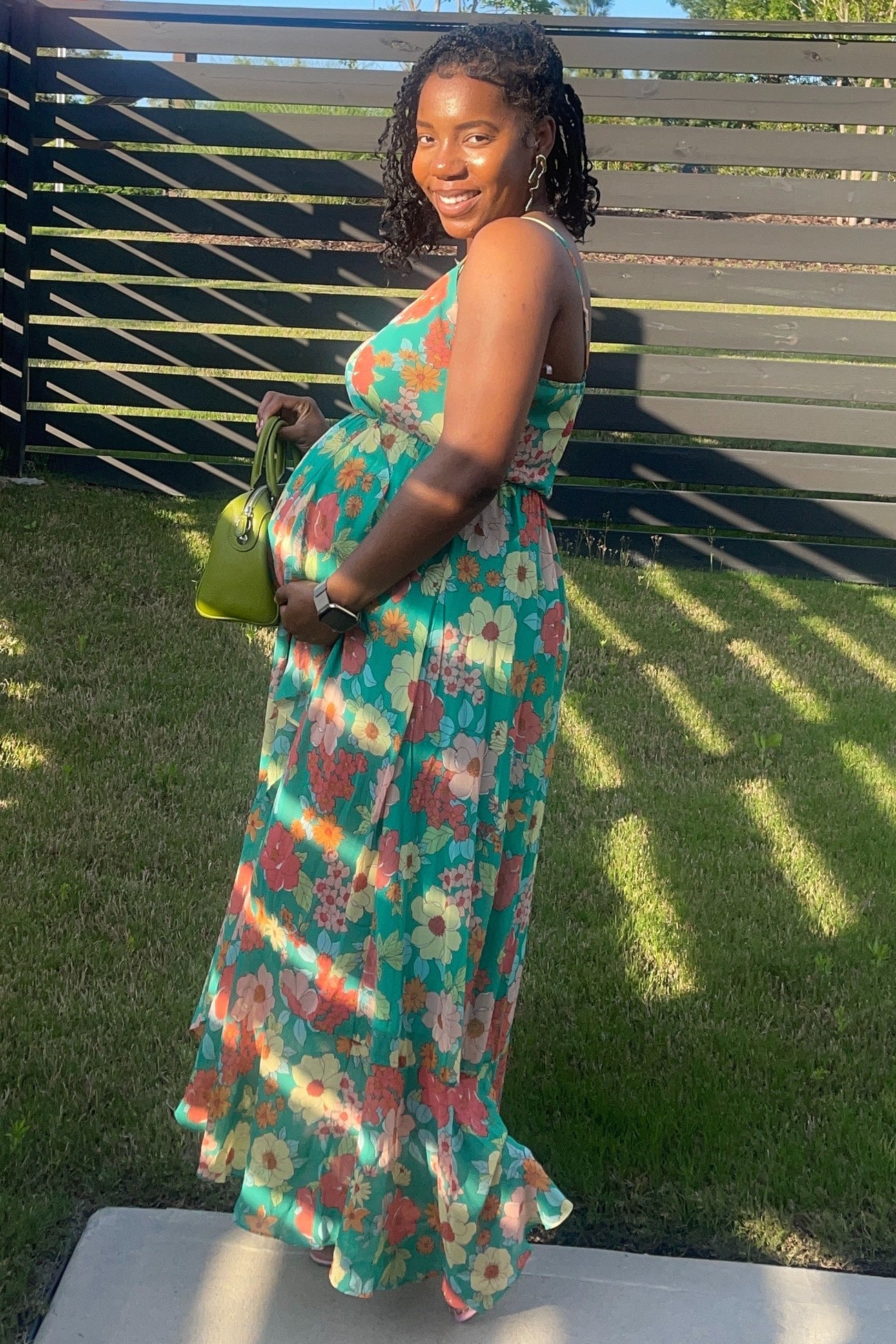 Green Floral Chiffon Ruffle Hi-Low Sleeveless Maternity Midi Dress