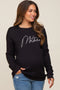 A floral pleated maternity dress that features a mock neckline and a back neck tie.