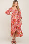 Green Floral Ruffle Shoulder Smocked Maternity Midi Dress