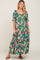 Green Floral Smocked Puff Sleeve Maternity Maxi Dress