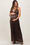 Green Printed Smocked Ruffle Strap Maternity Dress