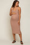 A textured maternity knit dress. Features a scoop neckline and elastic straps.