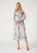 Grey Floral Mesh Smocked Midi Dress