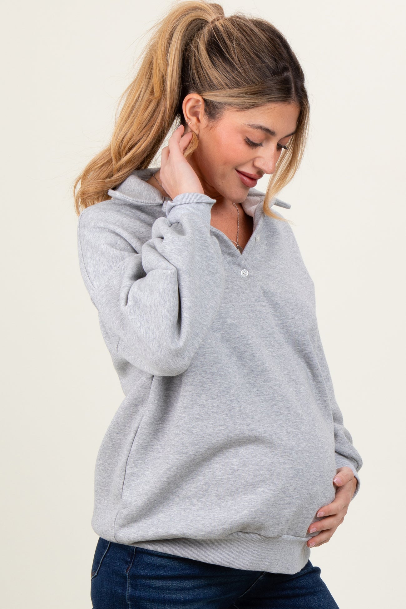 Heather Grey Oversized Long Sleeve Polo Maternity Pullover