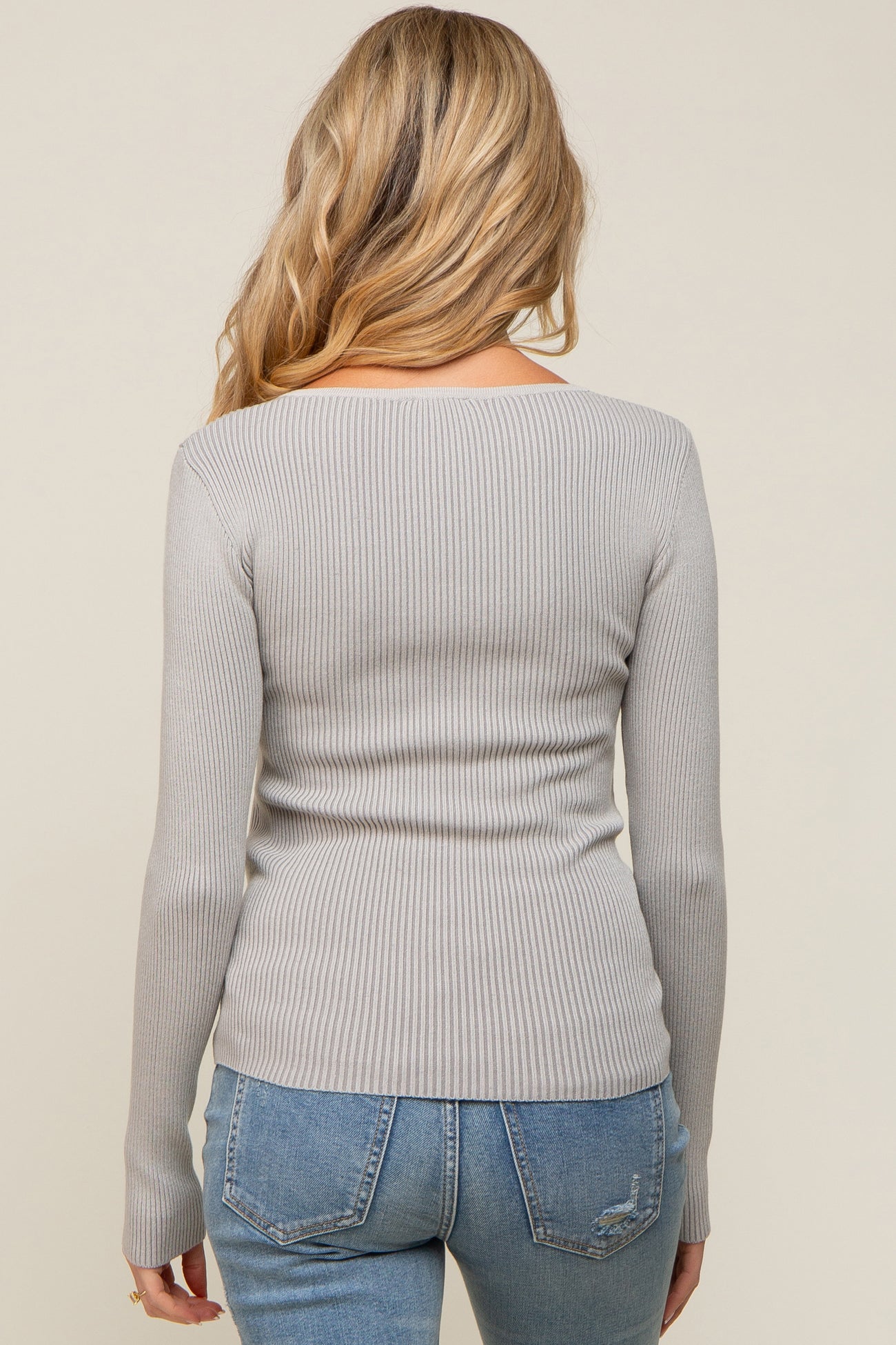 Heather Grey Ribbed V-Neck Long Sleeve Maternity Top