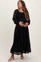 Hunter Green Smocked Ruffled Mesh Maternity Midi Dress