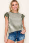 Ivory/Black Stripe Ribbed Ruffle Sleeve V-Neck Top