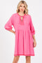 Ivory Bow Print Shirred Bodice Puff Sleeve Dress