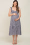 A pair of denim maternity overalls featuring adjustable straps, side buttons, side pockets, belt loops, two back pockets, and a wide pant leg with raw hem detailing.