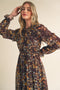 A floral print midi dress featuring a v-neckline, a smocked bodice, short flutter sleeves, side pockets and double lining.
