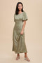 Details A leaf print dress with a squared neckline, ruffle trim cap sleeves, a back cutout, and side pockets. Content + Care