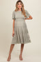 A soft fleece maternity shacket with a collar, front pockets, front functioning buttons, long sleeves and a curves hem. The waffle knit contrast fabric is featured on the hoodie, the sleeves, and the bottom hem.
