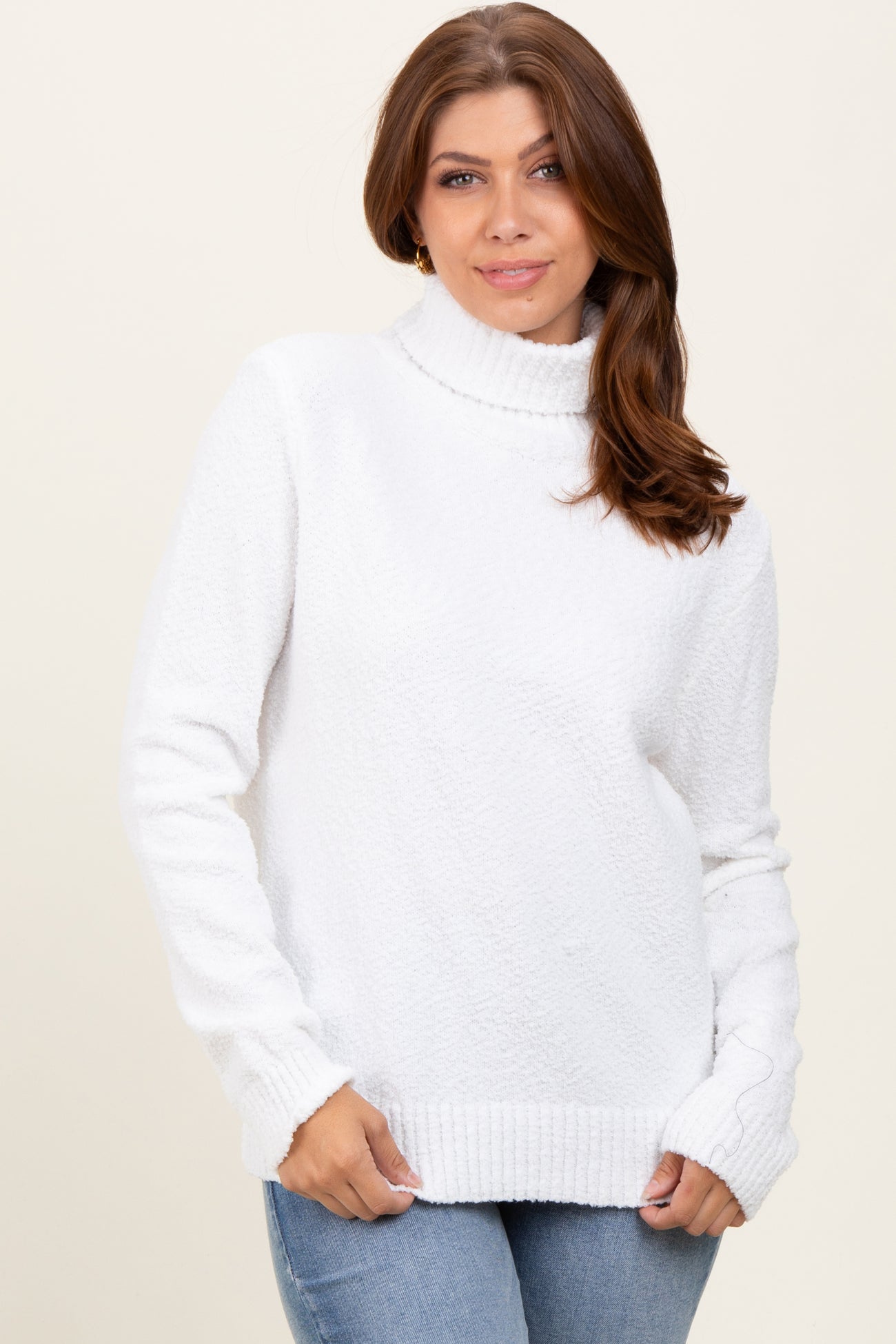 Ivory Turtleneck Chenille Knit Maternity Sweater