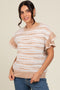 Ivory Two Tone Split V-Neck Dolman Short Sleeve Top