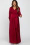 A pair of straight maternity jeans featuring five pockets, front distressed accents, a raw hem, and full panel belly band.