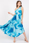 Light Blue Eyelet Smocked Square Neck Midi Dress