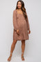 A floral maternity maxi dress with a deep v-neckline, capped ruffle sleeves, a tied back tie, an open back, and a tiered skirt. Dress is partially lined.