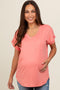 A solid maternity romper with a back cutout and two side pockets with button detail. Double lined.