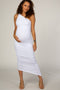 Light Olive Floral Chiffon Smocked Fitted Maternity Midi Dress