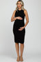 A solid maternity top with short sleeves, a v-neckline, and a hi-low hemline.