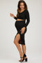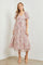 Light Pink Floral Ruffle Applique Puff Sleeve Midi Dress
