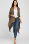 A floral print maternity plus cover up with short dolman sleeves, a front tie, and a hi-lo hemline.
