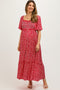 Light Pink Foral Front Cutout Open Cross Back Maternity Maxi Dress