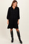 A fuzzy textured, soft knit sweater. Features a rounded neckline and drop shoulder sleeves.