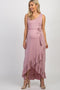 Light Pink Striped Ruffle Accent Maternity Maxi Dress