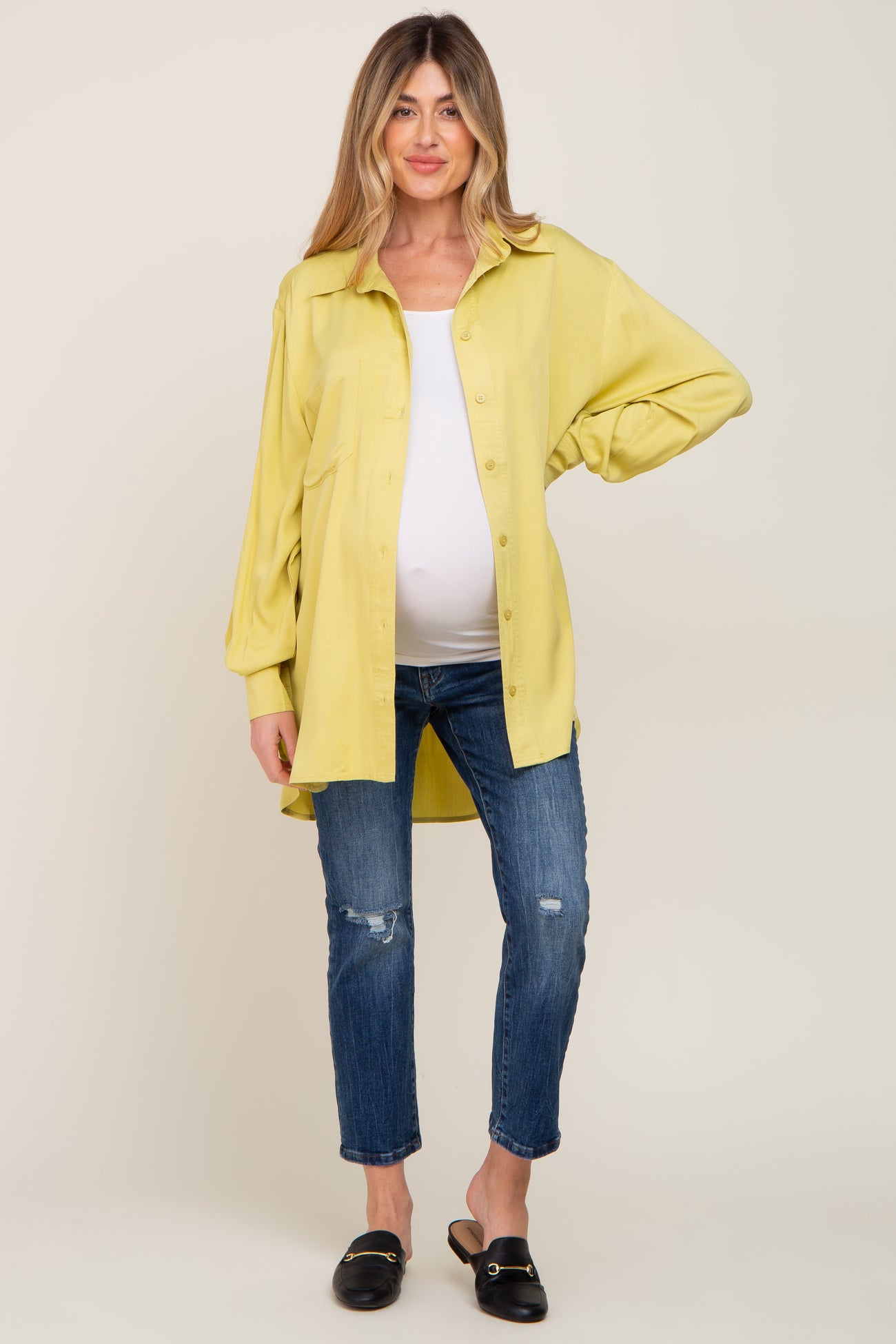 Lime Button Down Collared High-Low Hem Maternity Blouse