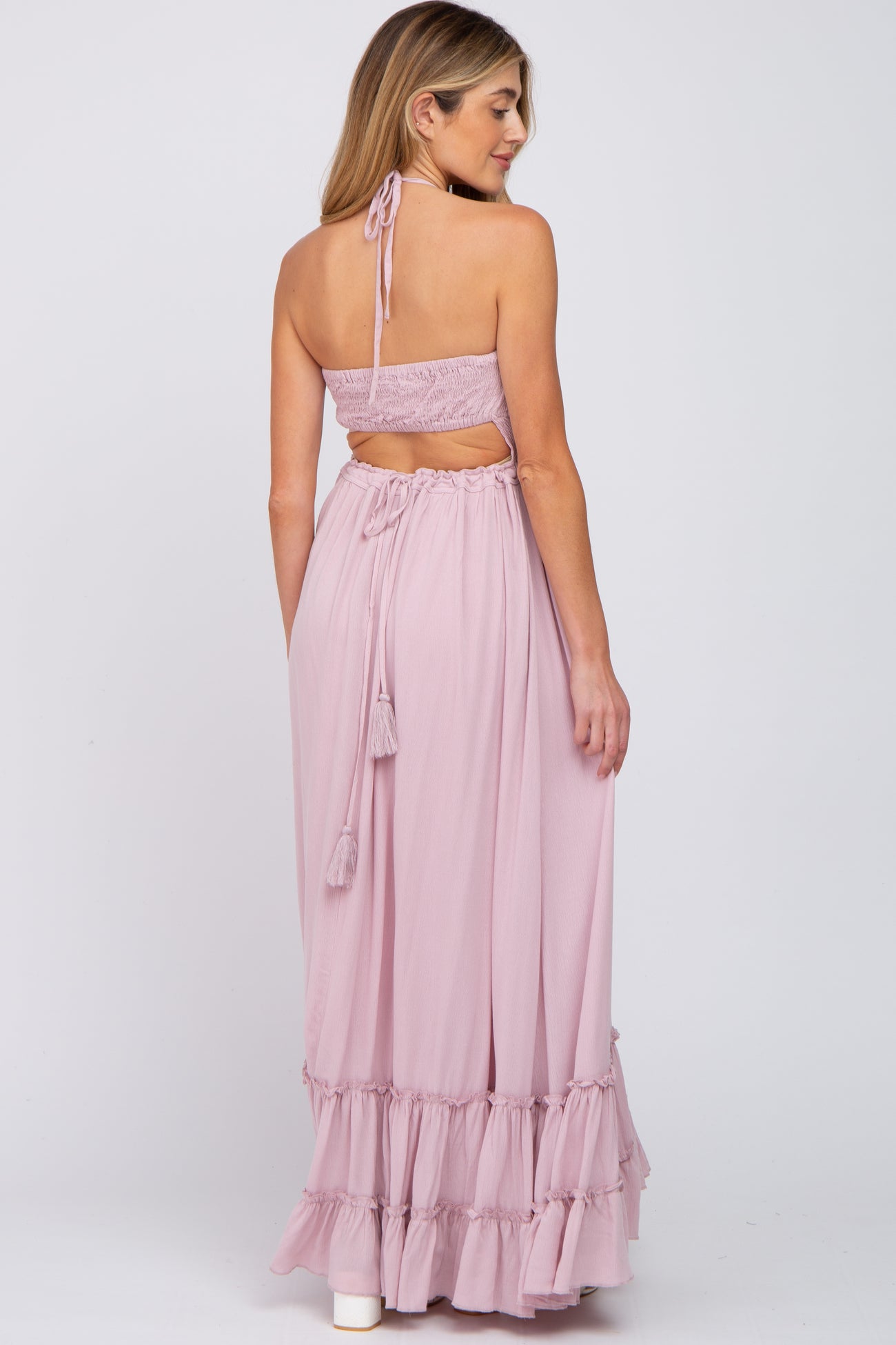 Mauve Halter Neck Cut Out Maternity Maxi Dress