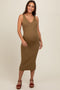 A sleeveless ribbed maternity dress featuring a fitted silhouette and a rounded neckline.
