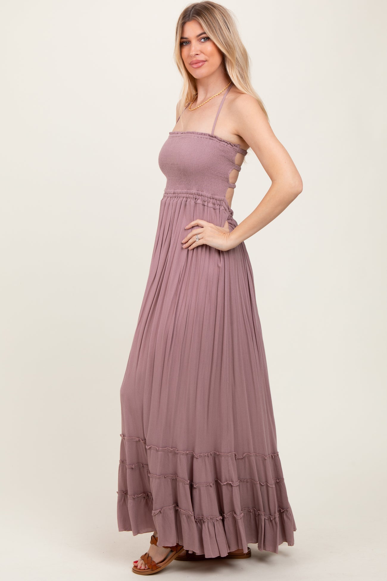 Mauve Smocked Woven Maxi Dress