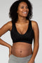 A solid hued ribbed maternity top featuring side ruching, fitted sleeves and a rounded neckline.