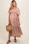 Mint Textured Square Neck Puff Sleeve Maternity Midi Dress