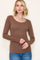 Mocha Fine Rib Scoop Neck Long Sleeve Top