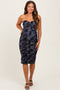 Mocha Floral Smocked Triple Front Tie Midi Dress