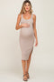 Mocha Ribbed Mock Neck Side Slit Maternity Maxi Dress