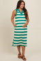 Mocha Striped Knit Polo Maternity Fitted Maxi Dress