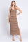 Details A striped ribbed knit midi dress featuring a rounded neckline with contrast trim, adjustable cami straps and a side slit. Content + Care