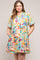 Details A printed maternity plus dress with puff sleeves, ruffle accent v-neckine and ruffle hem. Dress is lined. Content + Care