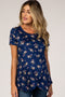 Navy Blue Distressed Fringe Hem Maternity Jeans