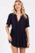 A short sleeve top that includes a v-neckline, and frayed hem.