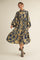 Navy Floral Button Down Bubble Sleeve Shirt Dress