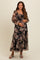 Navy Floral Square Neck Smocked Maternity Midi Dress