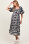A floral midi skirt featuring a back elastic waistband, side pockets, and a tiered hem. Skirt is partially lined.