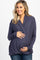 A soft, heather knit, maternity top featuring long sleeves and a draped wrap v-neckline.