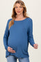 Navy Knit Striped Long Maternity Cardigan