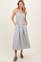 Navy Multi-Striped Button Up Ruffle Sleeve Midi Dress