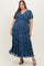 Navy Printed Button Down Tiered Maternity Plus Maxi Dress